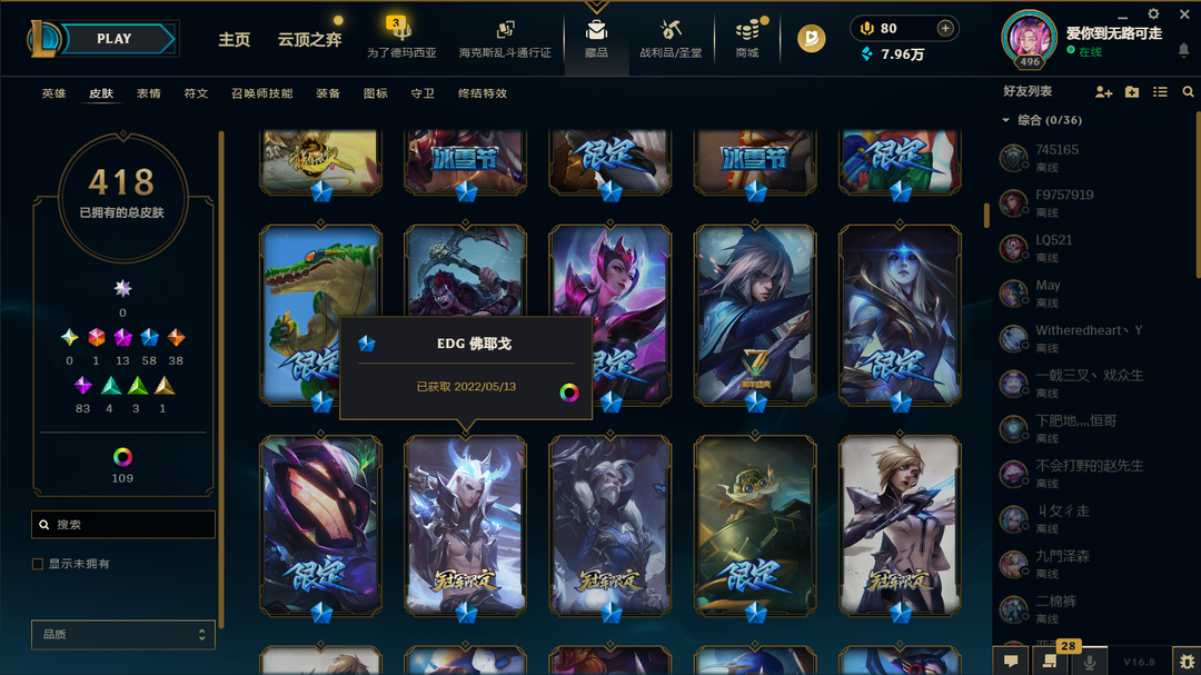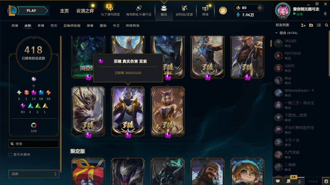 四区888原皮+528炫彩黑铁可排⚡真伤亚索EDG全套IG全套⚡️T1套⚡星守拉克丝