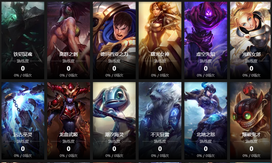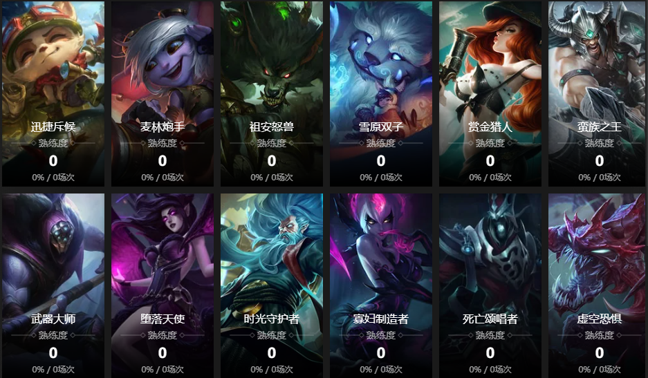 探险家;圣枪游侠;寒冰射手;黑暗之女;德邦总管;无极剑圣;牛头酋长;亡灵战神;战争女神;众星之子;迅捷斥候;麦林炮手;祖安怒兽;雪原双子;赏金猎人;蛮族之王;武器大师;堕落天使;时光守护者;痛苦之拥;虚空恐惧;殇之木乃伊;披甲龙龟;祖安狂人;琴瑟仙女;风暴之怒;瓦洛兰之盾;邪恶小法师;皮城女警;蒸汽机器人;熔岩巨兽;永恒梦魇;扭曲树精;复仇焰魂;盲僧;大发明家;沙漠死神;兽灵行者;圣锤之毅;不屈之枪;铁铠冥魂;德玛西亚之力;曙光女神;放逐之刃;光辉女郎;远古巫灵;九尾妖狐;潮汐海灵;不灭狂雷;北地之怒;诺克萨斯之手;冰霜女巫;皎月女神;荆棘之兴;虚空之女;疾风剑豪;弗雷尔卓德之心;戏命师;暴走萝莉;影流之主;皮城执法官;唤潮鲛姬;魔法猫咪;魂锁典狱长;腕豪